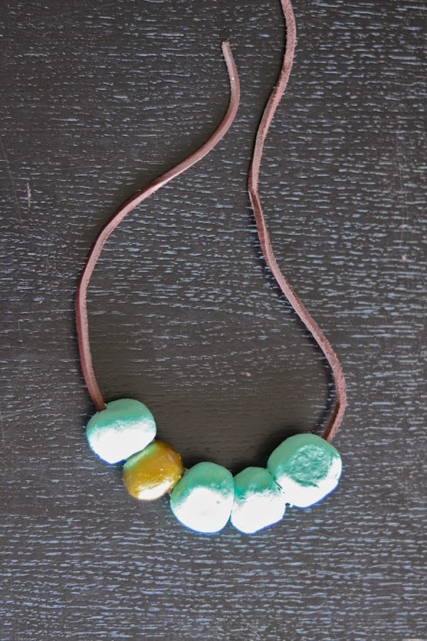 3. Hacer un agujero (esto es lo más complicado...hacerlo con cuidado para que no se os deformen las bolas). De todos modos, como veréis, al final las bolas del collar no quedan perfectas y se apachurran un poco, pero me gustan así...