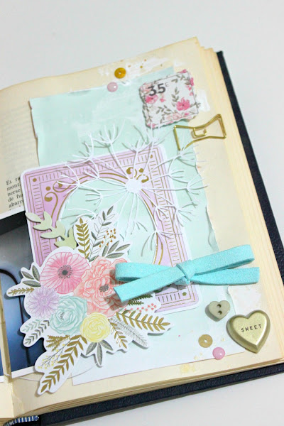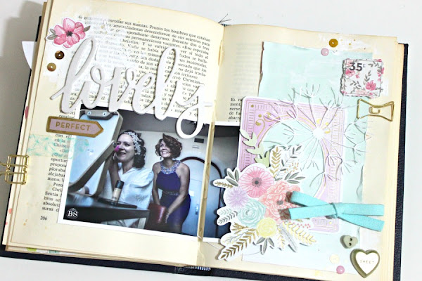 Para elaborar las páginas, he usado la colección Take me Away de Paige Tailor Evans que diseñó para Pink Paislee :) es tan bonita y dulce!