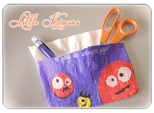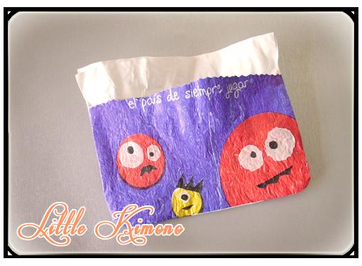Corté trozos de otra bolsa para hacer los ojos, bocas y complementos