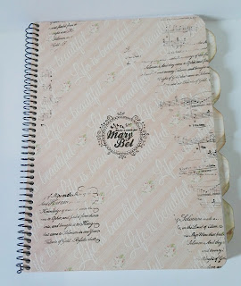 ya podemos decorar la portada a nuestro gusto, y si lo preferimos, la libreta también. En mi caso como va dentro de las tapas, solamente he quitado la espiral, he forrado la portada y le he troquelado los agujeritos otra vez, le he añadido unos separadores y listo: