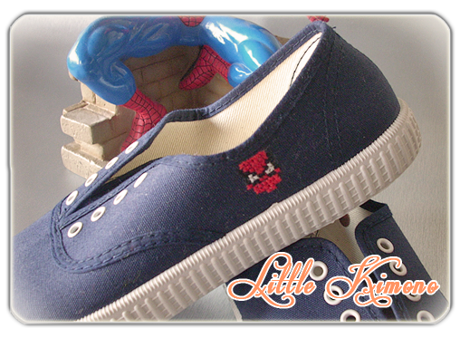 Zapatillas customizadas en punto de cruz de Spiderman