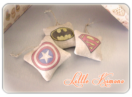 Saquitos aromáticos con los logos de Capitán América, Batman y Superman
