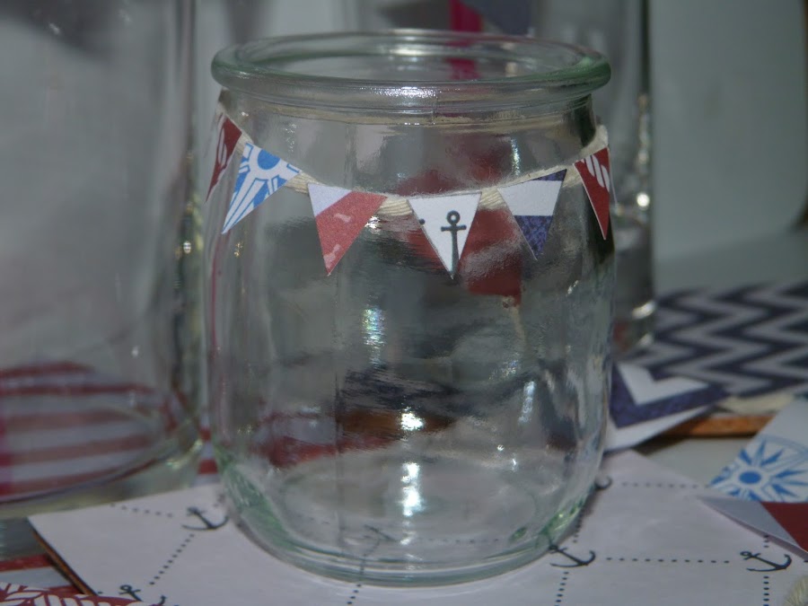 Otra muyyyy pequeña para reciclar un vasito de cristal como portavelas y completar la mesa veraniega.