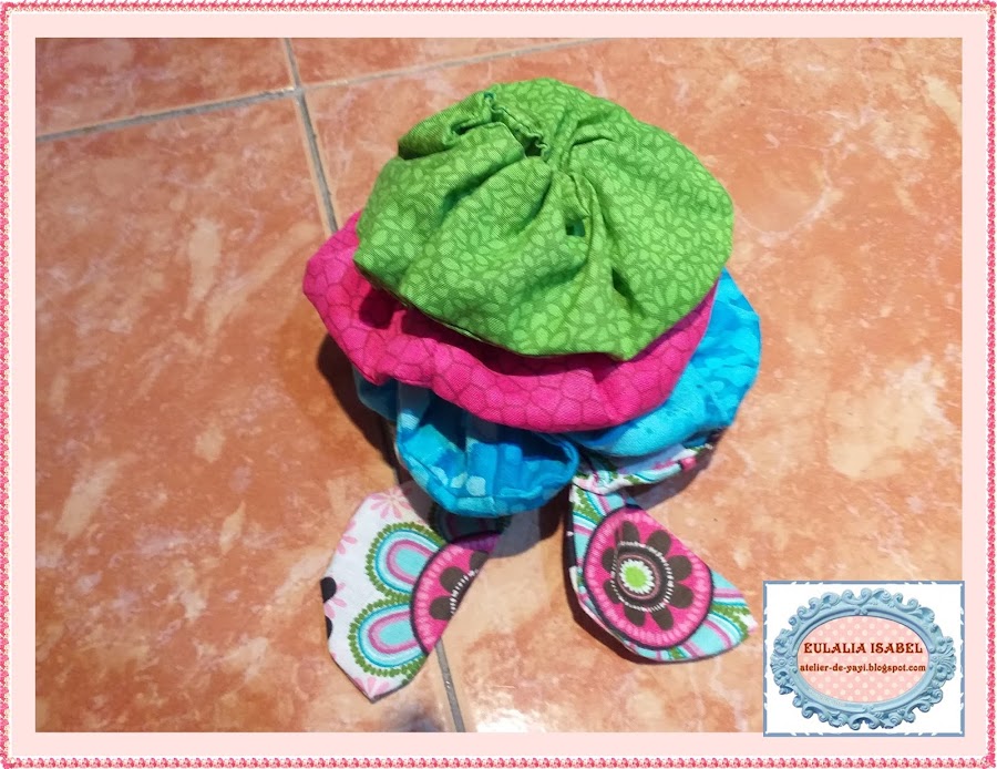 Utilizando los retazos, y me encanta hacer estos coleteros, confeccioné varios para mis nietas, a ellas les encanta.