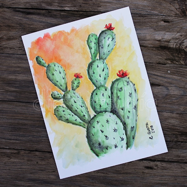 ¿Queréis ver cómo quedó? Así resulto esta nueva lámina, con unos cactus como protagonistas (es que no había probado los tonos verdes en la anterior…):