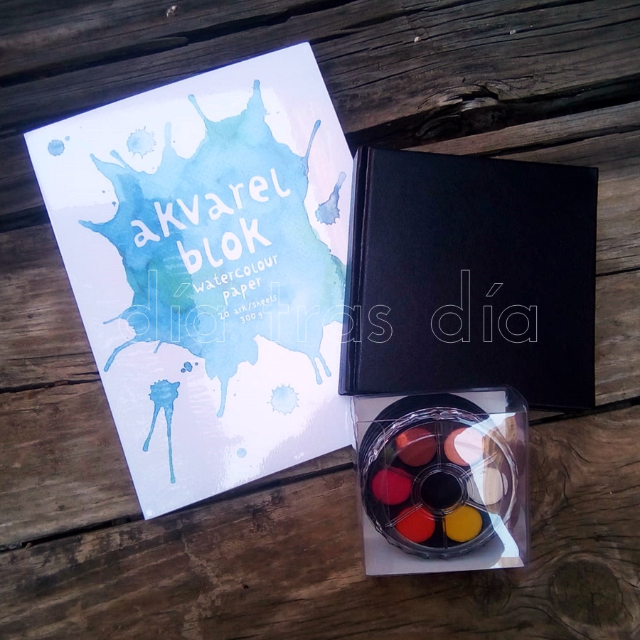 Así que me llevé la cajita y un bloc de papel de acuarela, pensando en hacer algunas en vacaciones.