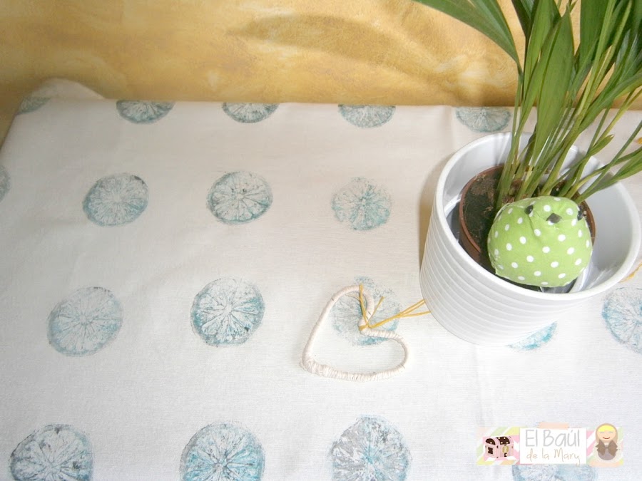 Nosotros hemos tuneado un camino de mesa liso que compramos en su día para estampar en él, aunque la intención era un sello y no fruta, jejeje.
