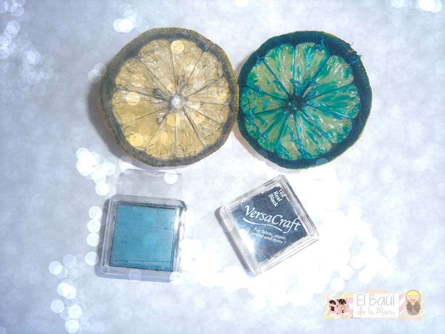 1.- Al principio, el sello no queda bien impregnado en el limón, supongo que por el zumo del limón... No espachurreis la tinta contra el limón como si no hubiese mañana que lo único que conseguiréis es un manchurrón terrible.