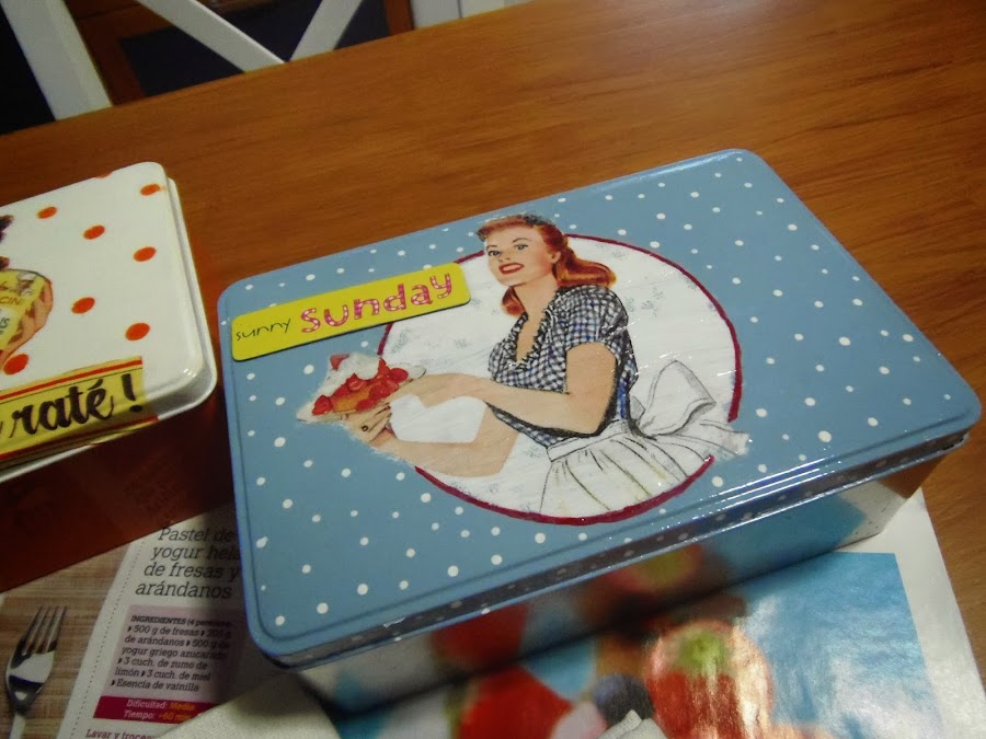 He decorado sólo las tapas y he mantenido el color original en la parte de abajo,porque no sé si a vosotras os pasa pero a mí las latas pintadas se me acaban descascarillando por dónde se cierran,las pinte con lo qué las pinte.