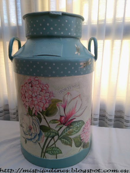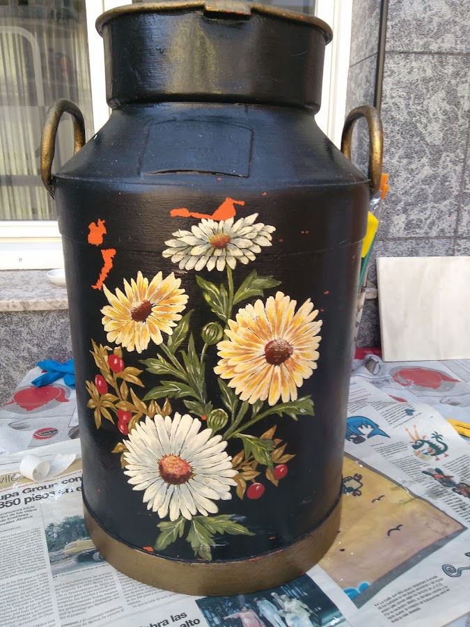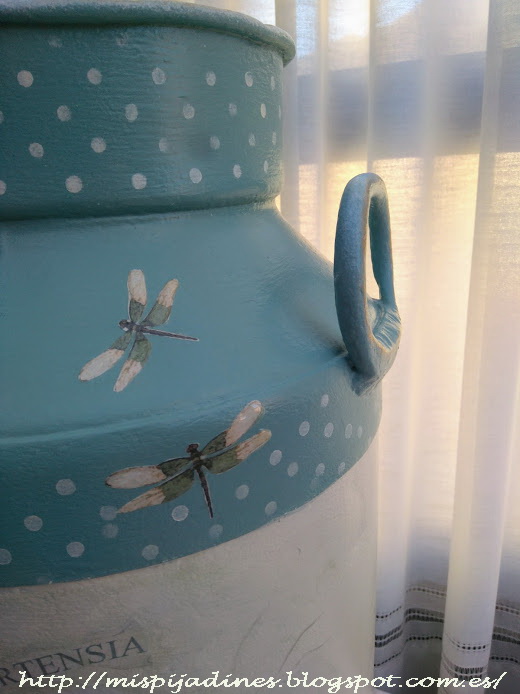 La lechera en cuestión ya se veía fea y un poco anticuada, me daba pena pues estaba muy bien pintada, (no la había pintado yo) así que llevaba un tiempo pensando en darle una nueva vida