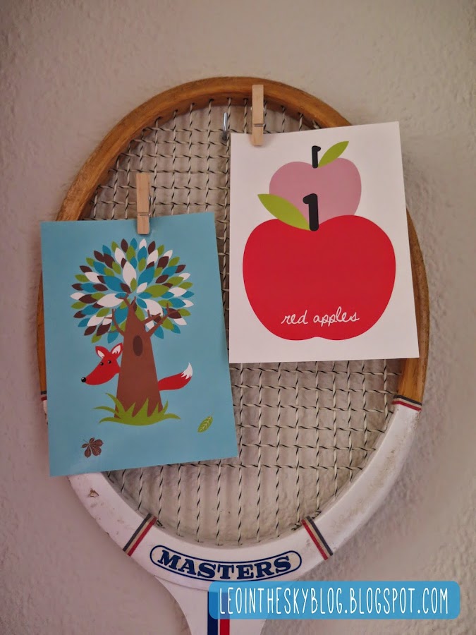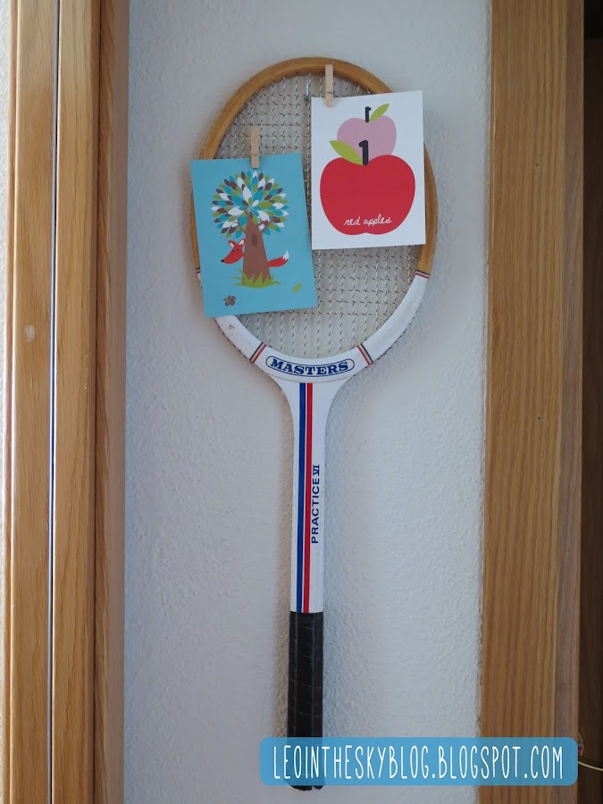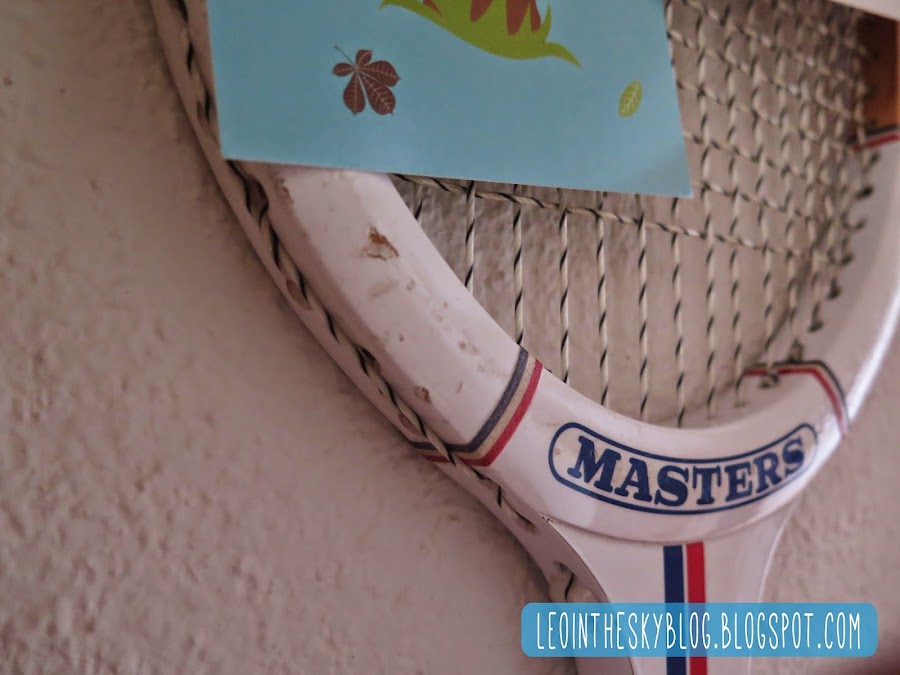 Así que este puede ser probablemente el DIY más facilón de la historia, a saber: te agencias una raqueta, cuanto más antigua mejor (la mía es de los ochenta, pero las hay mucho más bonitas de los años veinte..., claro que también son más caras y la mía estaba en casa de mis padres criando polvo...), la limpias un poco el polvo, buscas un lugar donde ponerla en tu casa y la cuelgas.