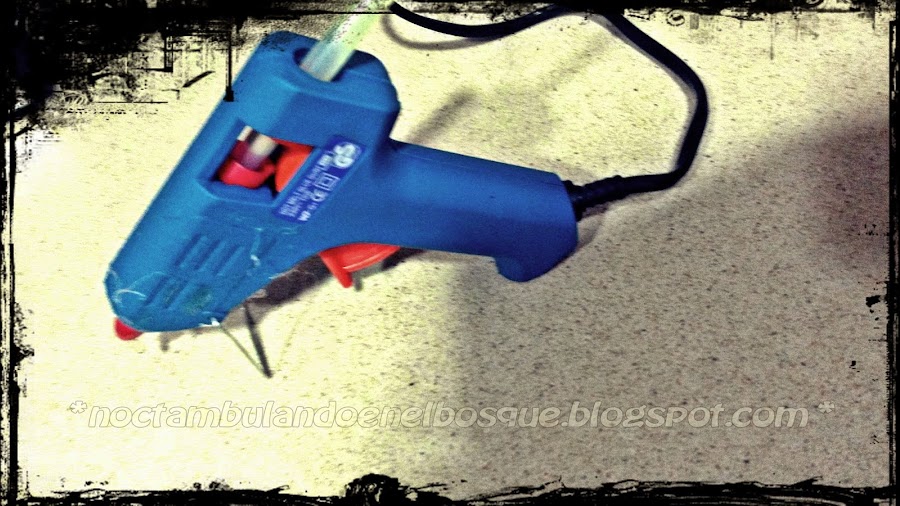 Una vez limpio, cogeremos la pistola termofusible y, con mucho pulso, escribiremos sobre el cristal lo que queramos. En este caso yo escribí "Chez moi", que en francés significa "mi casa". También podéis hacer un dibujo en lugar de escribir algo, aunque tened en cuenta que con pistola es complicado, así que no os quedará perfecto, todo depende del pulso que tengáis.