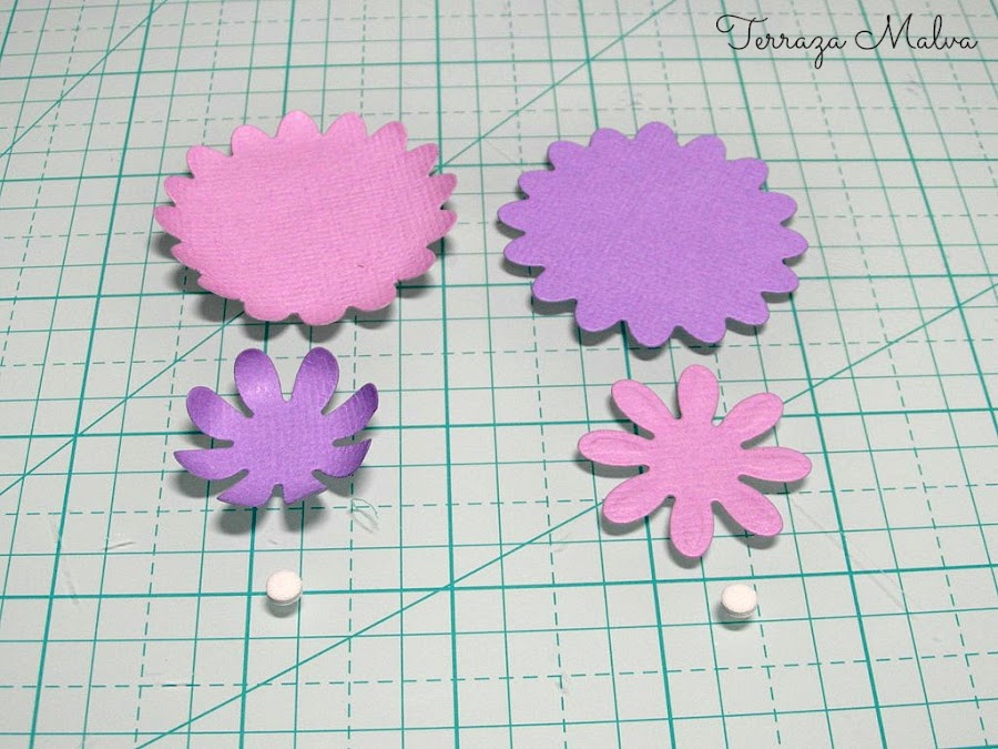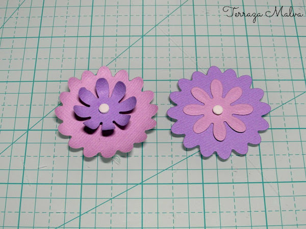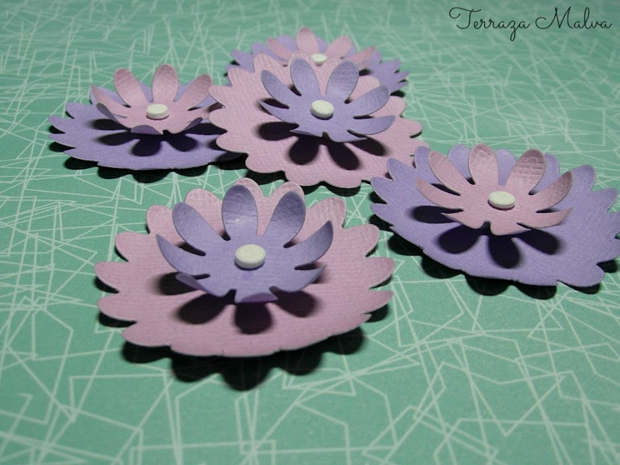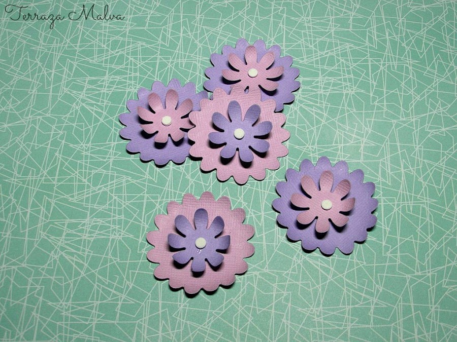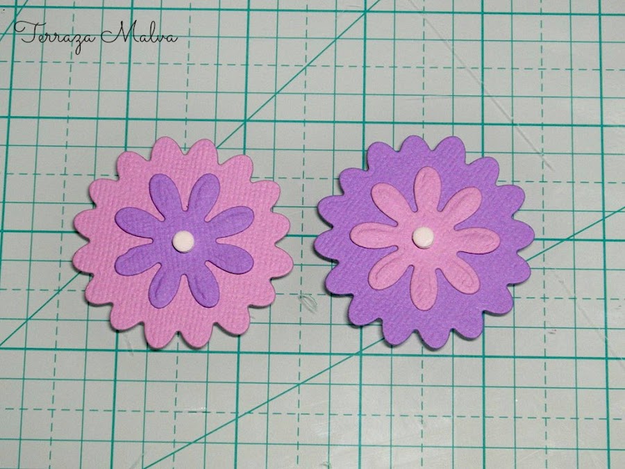 Como veis se pueden lograr diferentes efectos con el mismo troquelado, combinando los colores de las diferentes capas, dando volumen o no, combinando varias flores.....