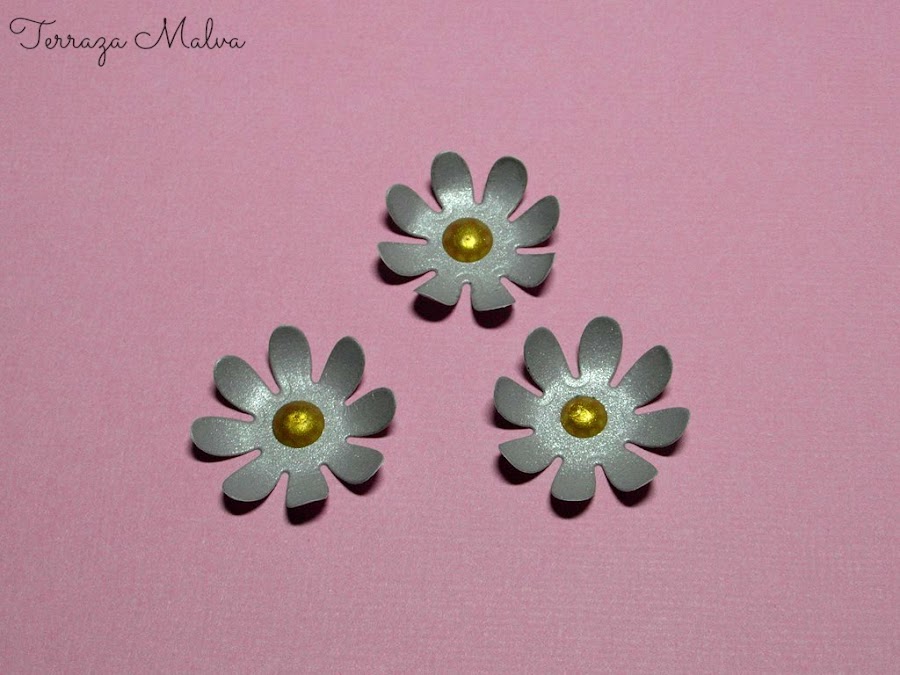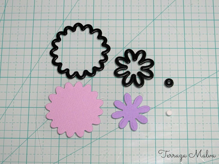 No quería incorporar flores grandes de momento así que compré un mini troquel de la marca X-Cut, de referencia XCU503602. Es un troquel relativamente económico (me costó menos de 3€), pero lo compré sin saber cómo iba a quedar la flor.... Pues bien, así es como quedan las flores: