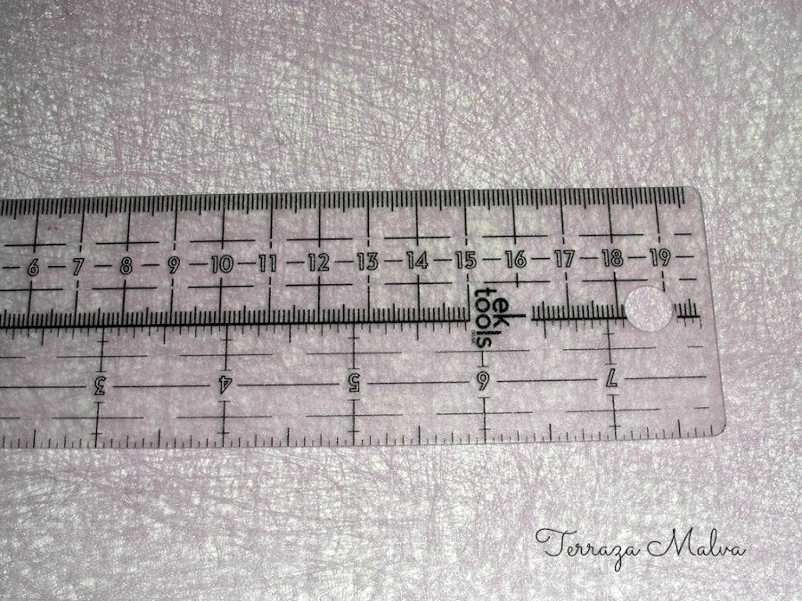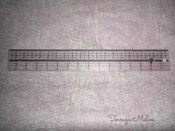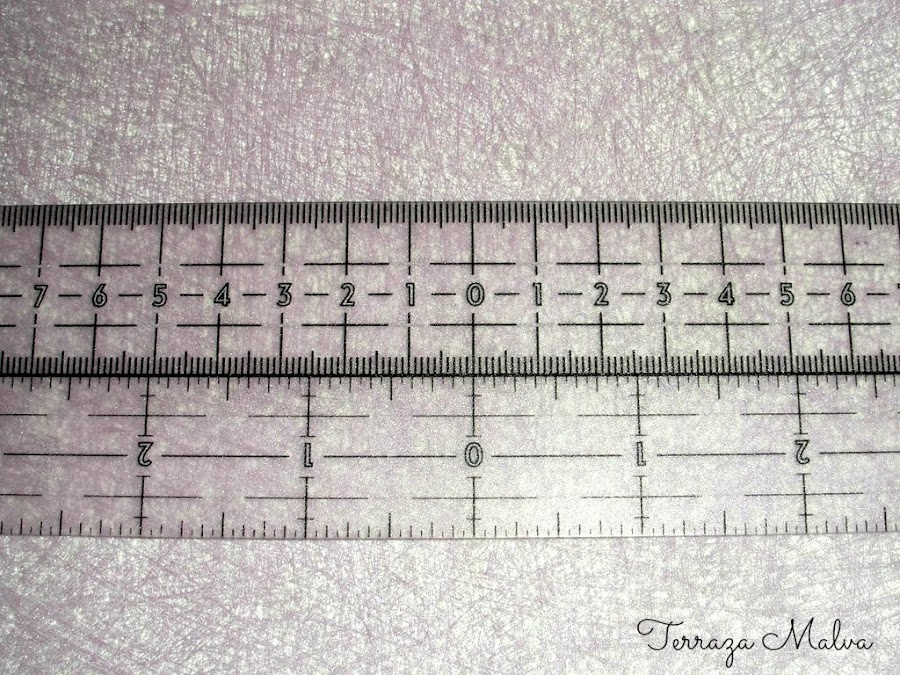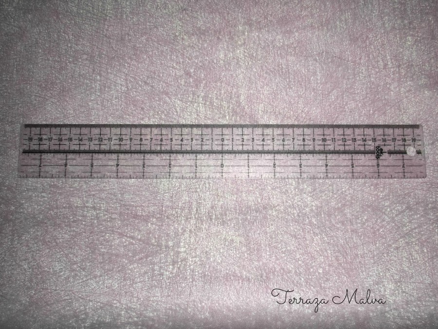 Es una regla flexible y transparente con medidas tanto en centímetros como en pulgadas. La numeración comienza desde el centro de la regla y va hacia derecha e izquierda hasta 19 cm y 7.5 " (dependiendo del sistema de medida a utilizar). La graduación es fácil de leer y los números están pintados de blanco en su interior lo que facilita una lectura en materiales negros u oscuros. También posee unas líneas horizontales que por la parte de la medida en centímetros están a 1, 1.5, 2 y 3 cm. y por la parte de la medida en pulgadas están a 1/4, 1/2, 3/4 y 1 pulgada para orientarnos en nuestros proyectos.