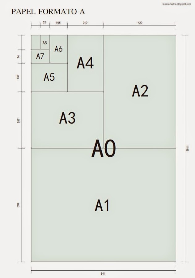 Se basa en los formatos definidos en la norma ISO 216 y la norma DIN 476. Según estas normas cada papel tiene aproximadamente la mitad de la superficie del tamaño inmediatamente superior, redondeando los lados en milímetros al entero inferior. Así pues el formato A0 tiene una superficie de 1 m2 y sus lados miden 841 y 1189 mm., y las siguientes divisiones se denominan A1, A2, A3, etc., indicando el número que acompaña a la letra A la cantidad de cortes que se realizan en el papel A0 para obtenerlos. Para obtener un papel A1 se realiza un corte a la mitad del lado más largo del papel A0. Para obtener un papel A2 se realiza un corte a la mitad del lado más largo del papel A1 y así sucesivamente con el resto de medidas.