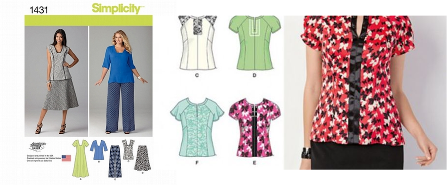 Simplicity 1463: blusas en las tallas 36 - 46, en la revista están los patrones de las vistas A, C, D y E: