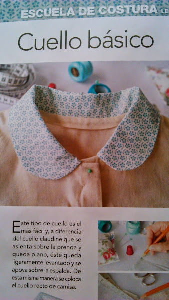 La revista Patrones me ha ayudado mucho a la hora de coser porque publica modelos muy actuales, algunos de conocidas marcas o diseñadores, facilitando el patrón en varias tallas y con unas instrucciones o explicaciones de la confección que se entienden muy bien. Además hay una sección que se llama "Escuela de costura" en la que nos dan lecciones de labores básicas. Este mes le ha tocado el turno al cuello básico y nos enseñan la diferencia con el cuello claudine, al que le dedican un "paso a paso" para aprender a hacerlo.