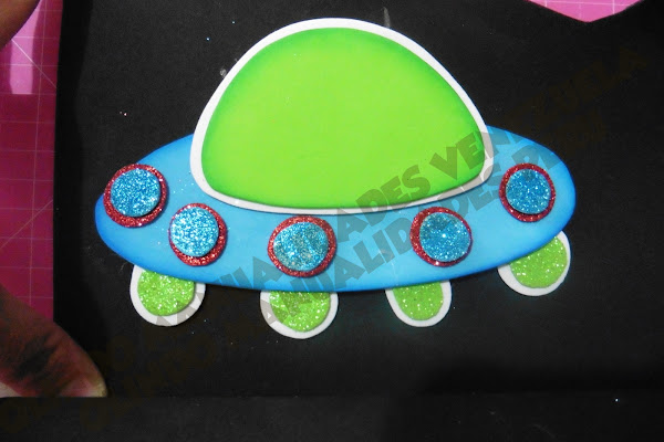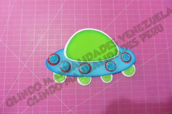 3. En la foto de abajo arme el OVNI, observa que utilice microporoso escarchado, para darle toques brillantes al ovni.