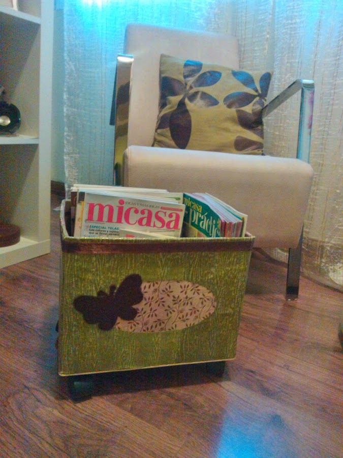 Hola, hoy os voy a enseñar como quedó una caja de cervezas que tenía por casa, como me gustaba el tamaño y el detalle de las asas, no me quería desaceher de ella, así que, mi chico me dijo que podía hacer un revistero y me pareció muy buena idea.