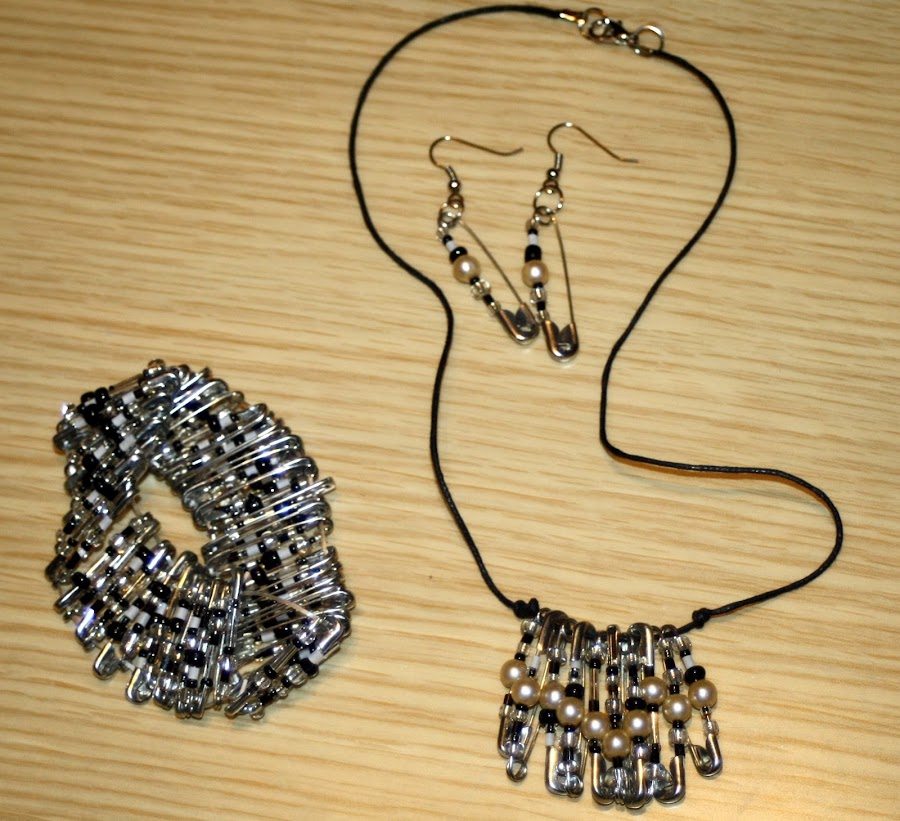 Y para Inma, un conjunto de pendientes, colgante y pulsera de lo más original, cuya idea saqué de un vídeo en Hogarutil la misma tarde del 5 de Enero: