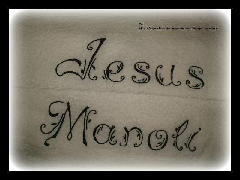 Y estas dos toallas bordadas obra de mi amatxu, para una pareja, que las lucirán en su baño.