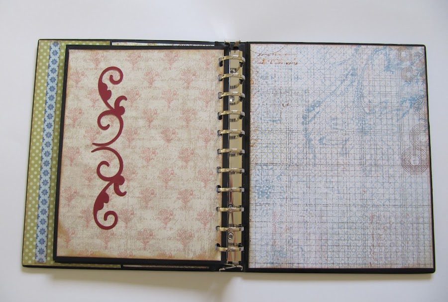 Vi oportuno que fuese un carpesano para poder modificarlo su interior según vengan viniendo mis necesidades, como es negra lo aproveche como marco de los papeles y tela, el papel, como he dicho de Tilda con otras colecciones y marcas, un bonito troquel de Die-namics con hojas de un libro viejo cortado en unas "pocas" veces para conseguir un falso chipboard, encima otro troquel de Nestabilities y mi firma, hecha con un abecedario que era blanco que lo pinte haciendo aguas para que quedara más integrado al trabajo. Los separadores son bolsillos, hechos con cartulina negra, para ir metiendo facturas, fotos,..., iré haciendo más si me hacen falta