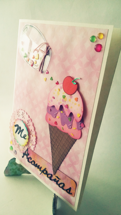 Así que me decidí en participar con esta divertida tarjeta de helado de Barquilla (así lo llamamos aquí en mi país)