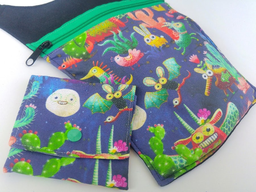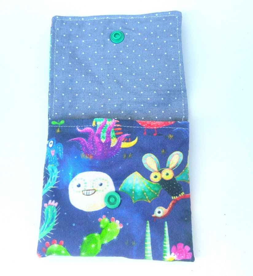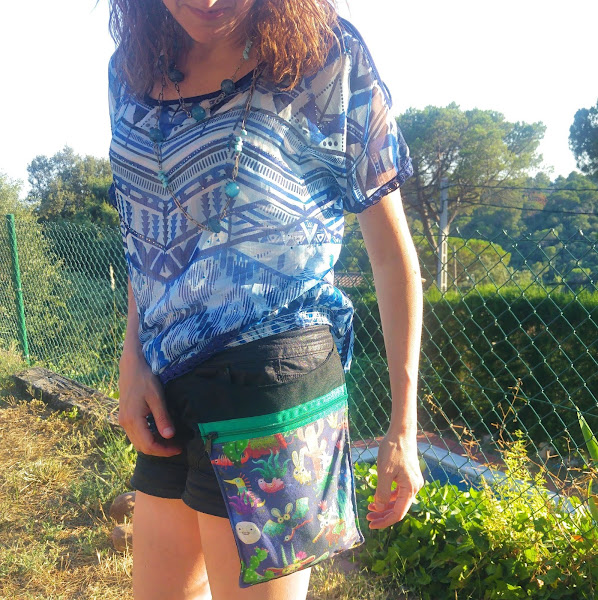 Le di un toque de color con la cremallera verde, la verdad es que ya es bastante cantona la tela! Por dentro tela de topos.