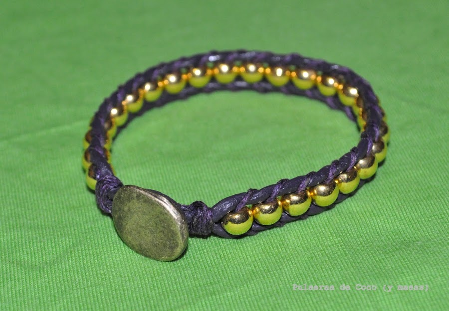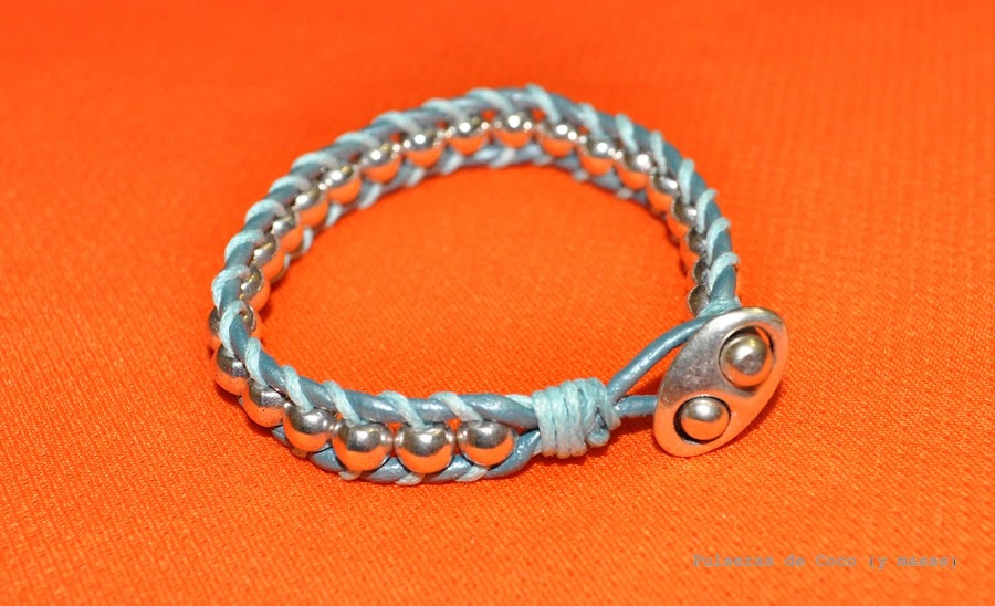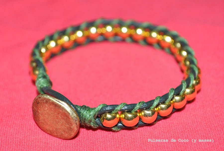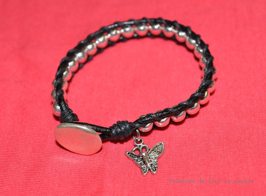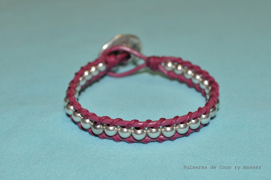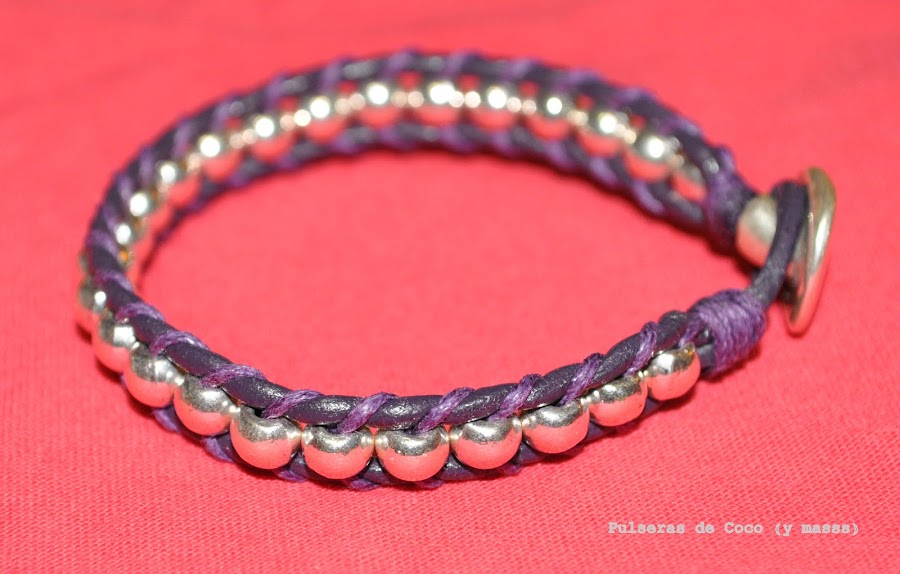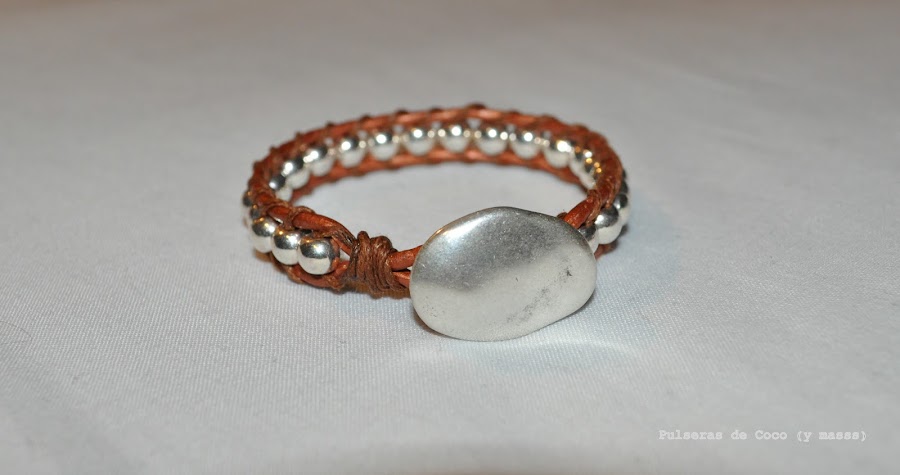 Es muy parecida a la Río doble, la que pusimos hace unos días, aunque varía un poco porque esta también lleva cuero. Al igual que la otra puede ser con bolitas color plata o dorada, y en muchos colores, ahora los vereis en las fotos.