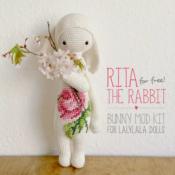 Esta conejita es una variación de uno de los patrones base de Lalylala. Para hacerla, partí del patrón de Kira the Kangaroo (que algún día también espero hacer…). En su página web tiene el patrón libre de las modificaciones que se hacen sobre este patrón base para conseguir convertirlo en tan simpática conejita. Y así, pieza a pieza, completé a Rita.