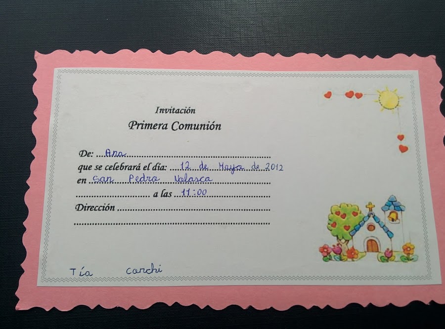 Y la invitación que escribió la protagonista del día, en este caso Ana es la siguiente