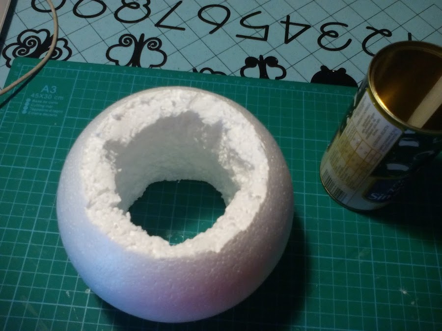 1. Cogemos la bola de porex y marcamos el bote de conservas.