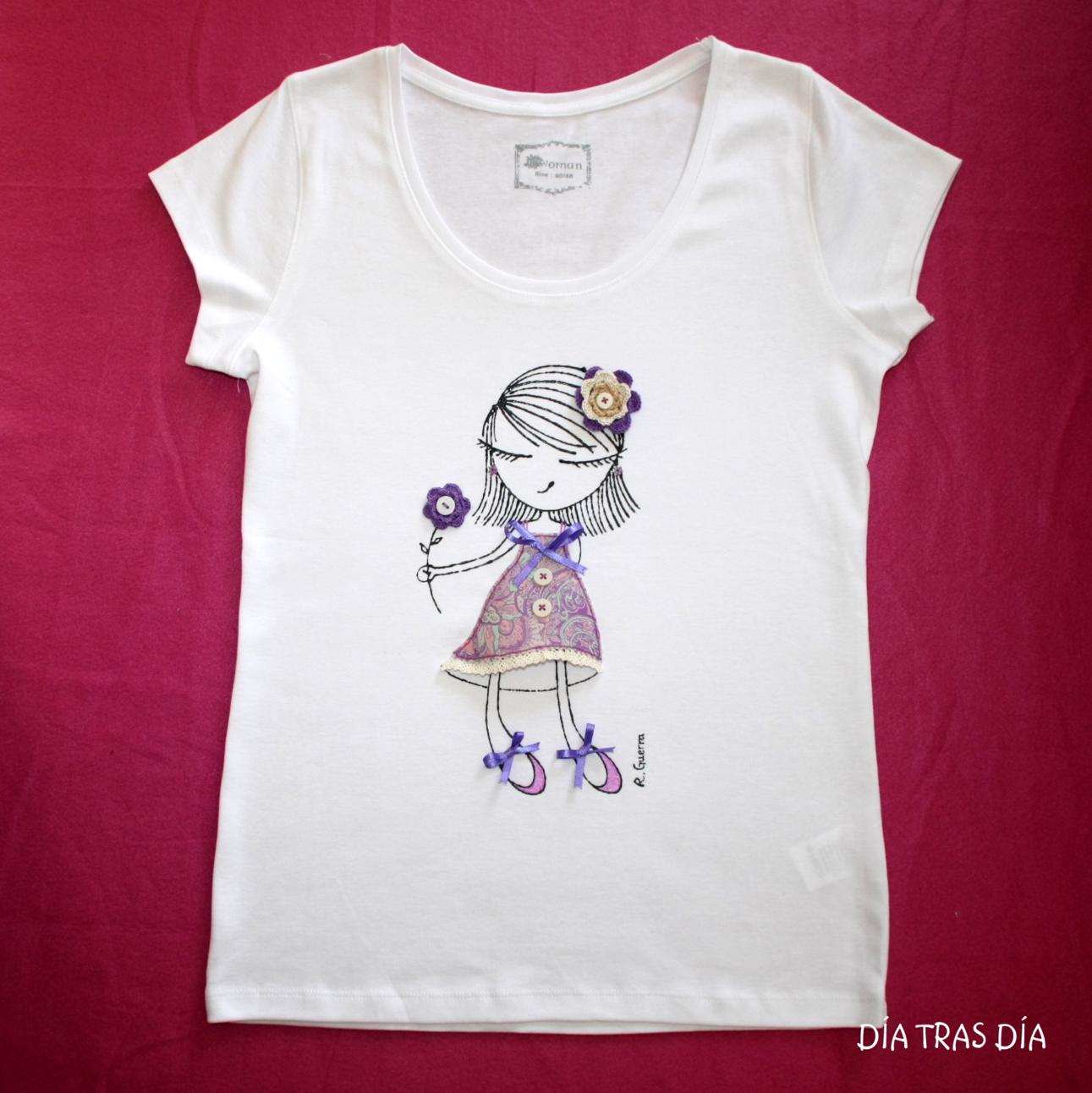 En esta ocasión traigo una nueva camiseta, que realicé por encargo de Cristina, una chica cordobesa muy simpática que quería regalar a su tía estas Navidades una de mis camisetas. Cuando se puso en contacto conmigo, viendo que igual estaba ya un poco apurada de tiempo, me pidió que le enviase cualquier camiseta que fuese de la talla que necesitaba. Pero como normalmente todas las camisetas las hago por encargo, no suelo tener ninguna en stock, así que le dije que podía intentar hacerle una lo más rápido posible.