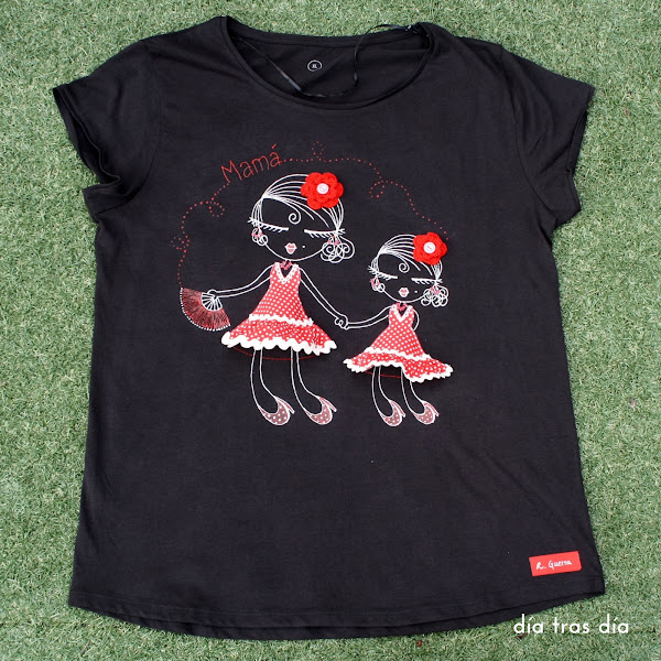 Pues así es como resultaron ambas camisetas, la de la mami en color negro y la de Sofía en color blanco. Y ambas personalizadas con el texto Mamápara la de Mercedes y Sofía para la de la peque: