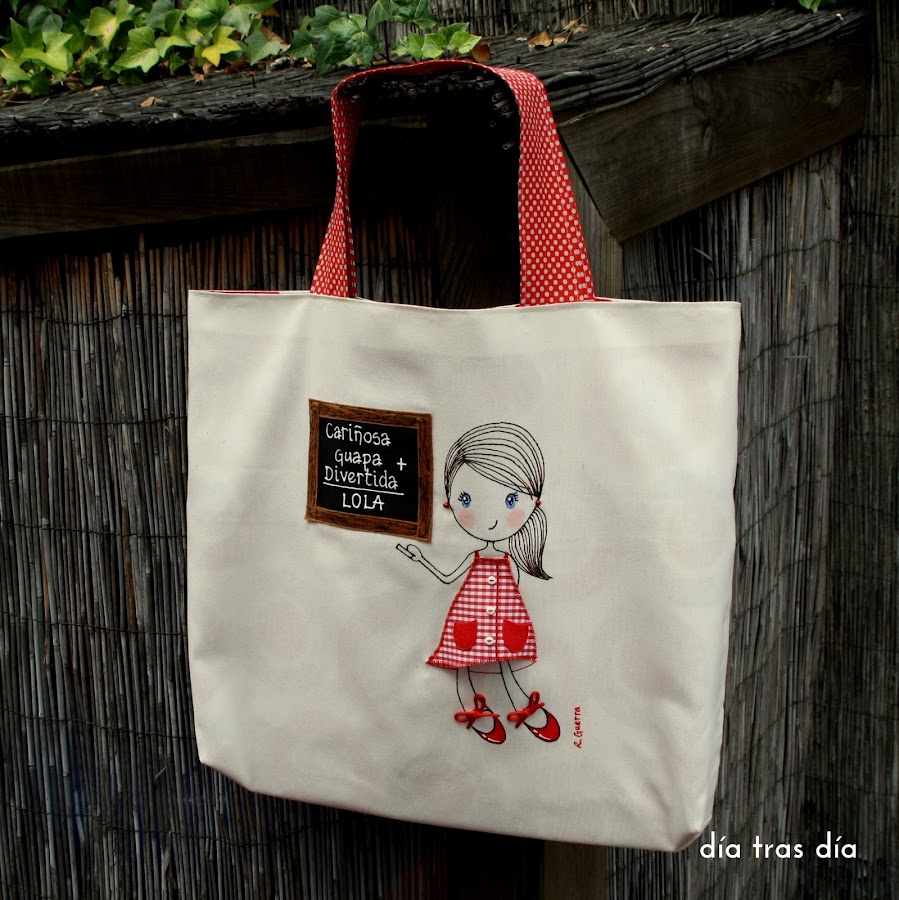 Hace unas semanas se puso en contacto conmigo Gabriel, uno de los clientes más fieles de Día tras Día. Ya el año pasado Gabriel me encargó una camiseta para regalar a la seño de su hija, que finalizaba su etapa de guardería. Pues este año, con la peque ya en infantil, me escribió para ver si me encargaba el regalo que iban a hacer de forma conjunta todos los papis de la clase. En principio les había gustado la idea del bolso, pero al final me planteó la posibilidad de hacer el bolso de mayor tamaño hasta convertirlo en una bolsa para la playa.