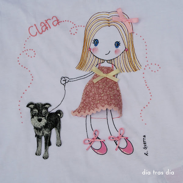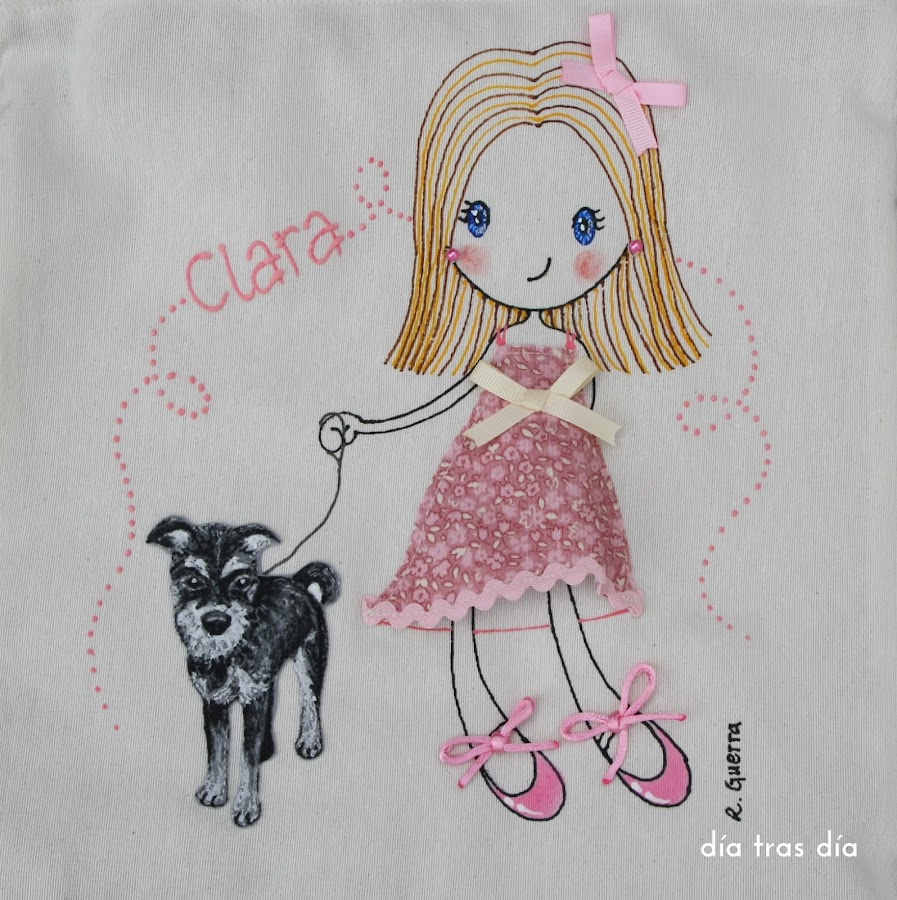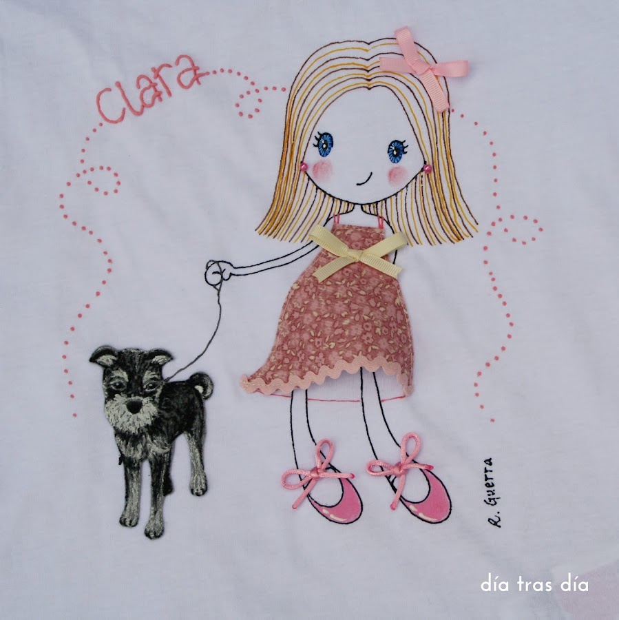 El día que Manuela vino a recogerme el pedido, me dijo que quería que le hiciera otro conjunto igual para su hija Clara. Pero me planteó un reto: me dijo que si era posible hacer una Ro-ro con los rasgos de Clara y que estuviera acompañada por su mascota, su perro Toby.