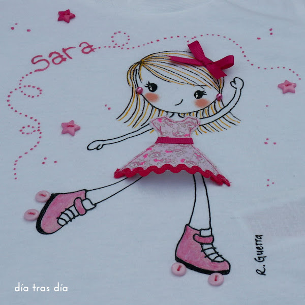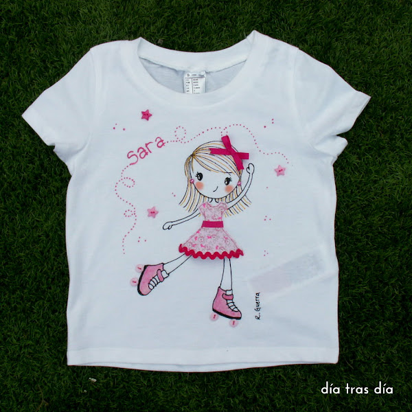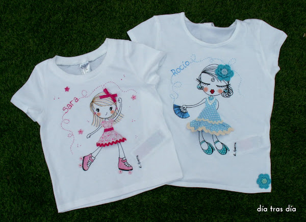 Carmenme encargó un par de camisetas para sus hijas, Rocío y Sara. Y eligió para Rocío el modelo Ro-ro flamencay para Sara el modelo Ro-ro patinadora.