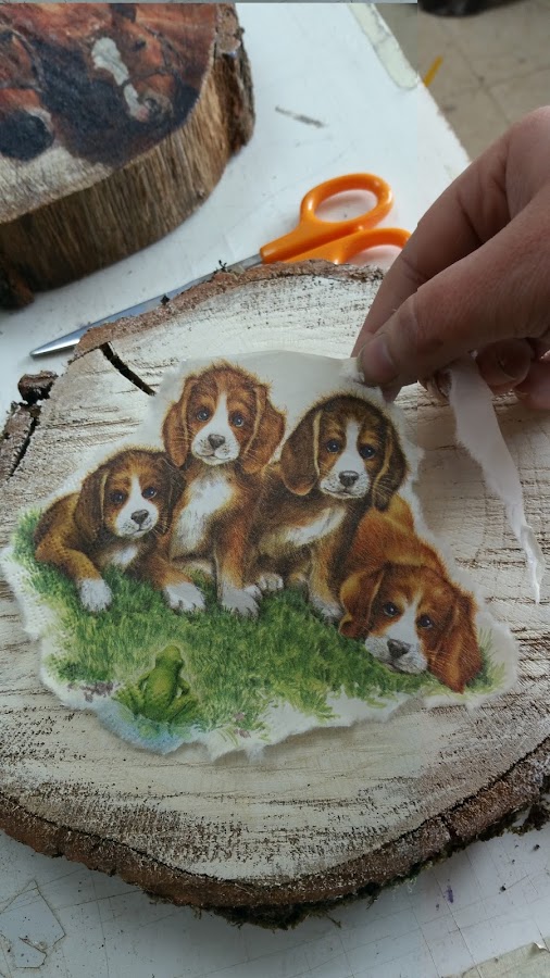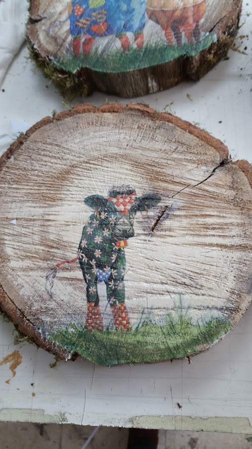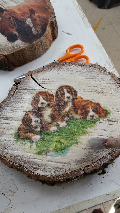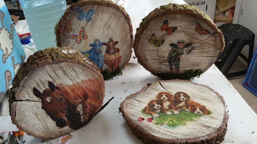 Rodajas de madera decoradas