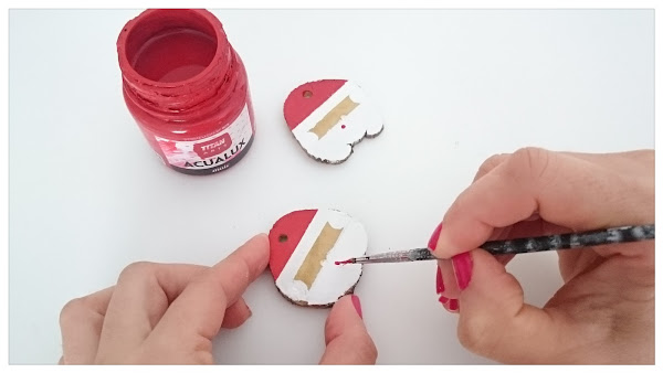 Haz con un pincel fino un circulito pequeño la boca, con la pintura roja.