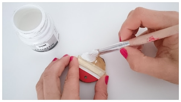 Con un pincel fino haz dos círculos en las extremos de cada rodaja, en color blanco.