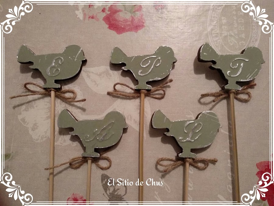 Y por detrás, un stencil en relieve con la inicial de cada amiga, aluminio adhesivo y pintura a la tiza.