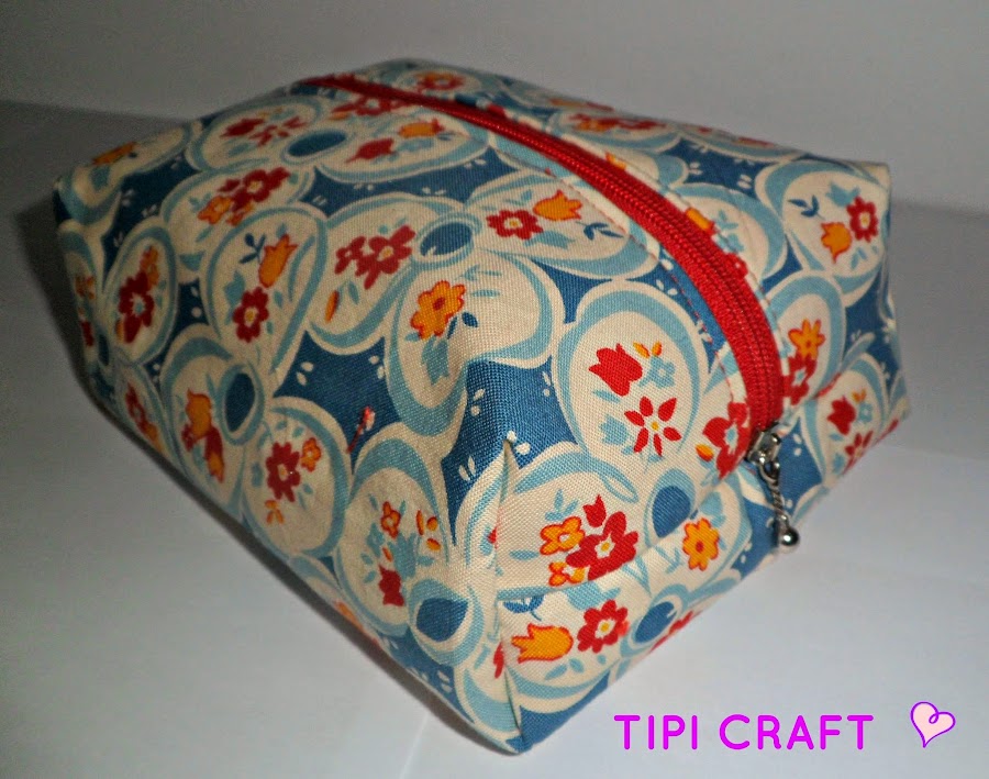 Un neceser en tonos rojos y la cremallera a juego.