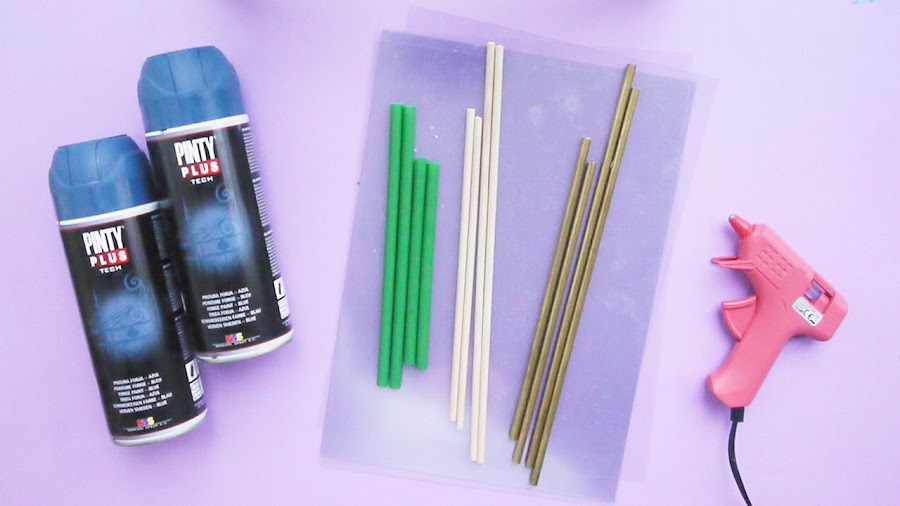 Y tú, qué materiales crees que escondo bajo estos marcos de forja? Pues muy sencillo! Lo único que necesitas es: pajitas, palos de madera y barras de metal, además de folios de acetatos, pistola de silicona y, por supuesto, tu pintura de forja en spray del color que más te guste.