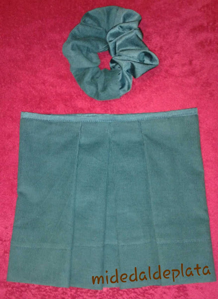 A pesar de dejar un generoso dobladillo para cuando sea necesario alargar la falda, nos sobró tela con la que haremos varios coleteros y terminar así el conjunto.