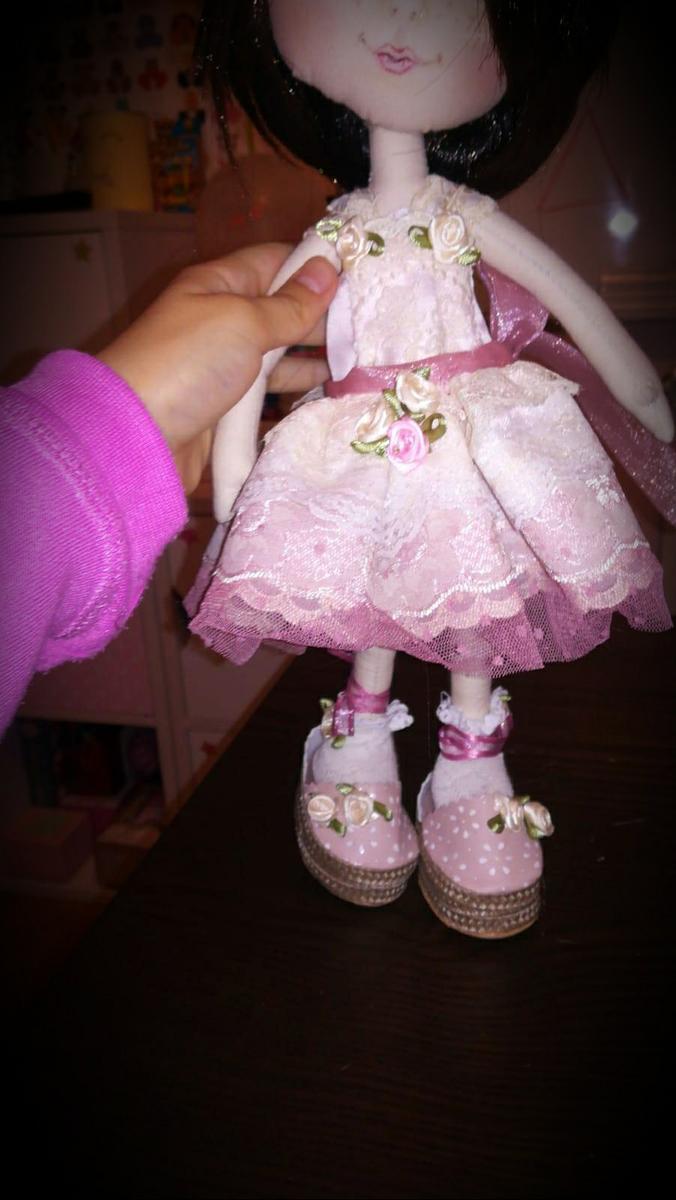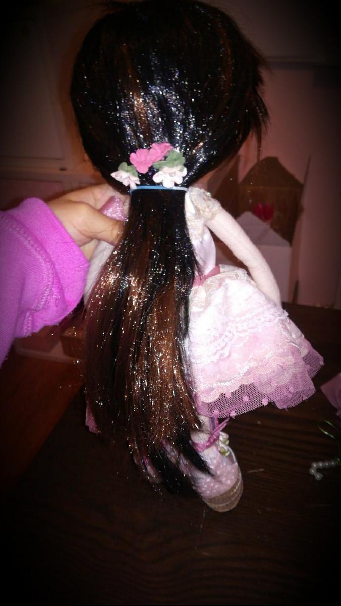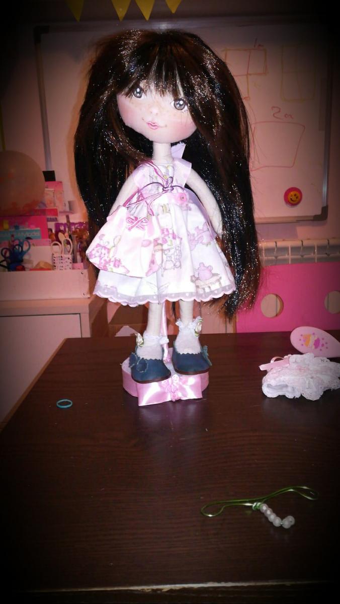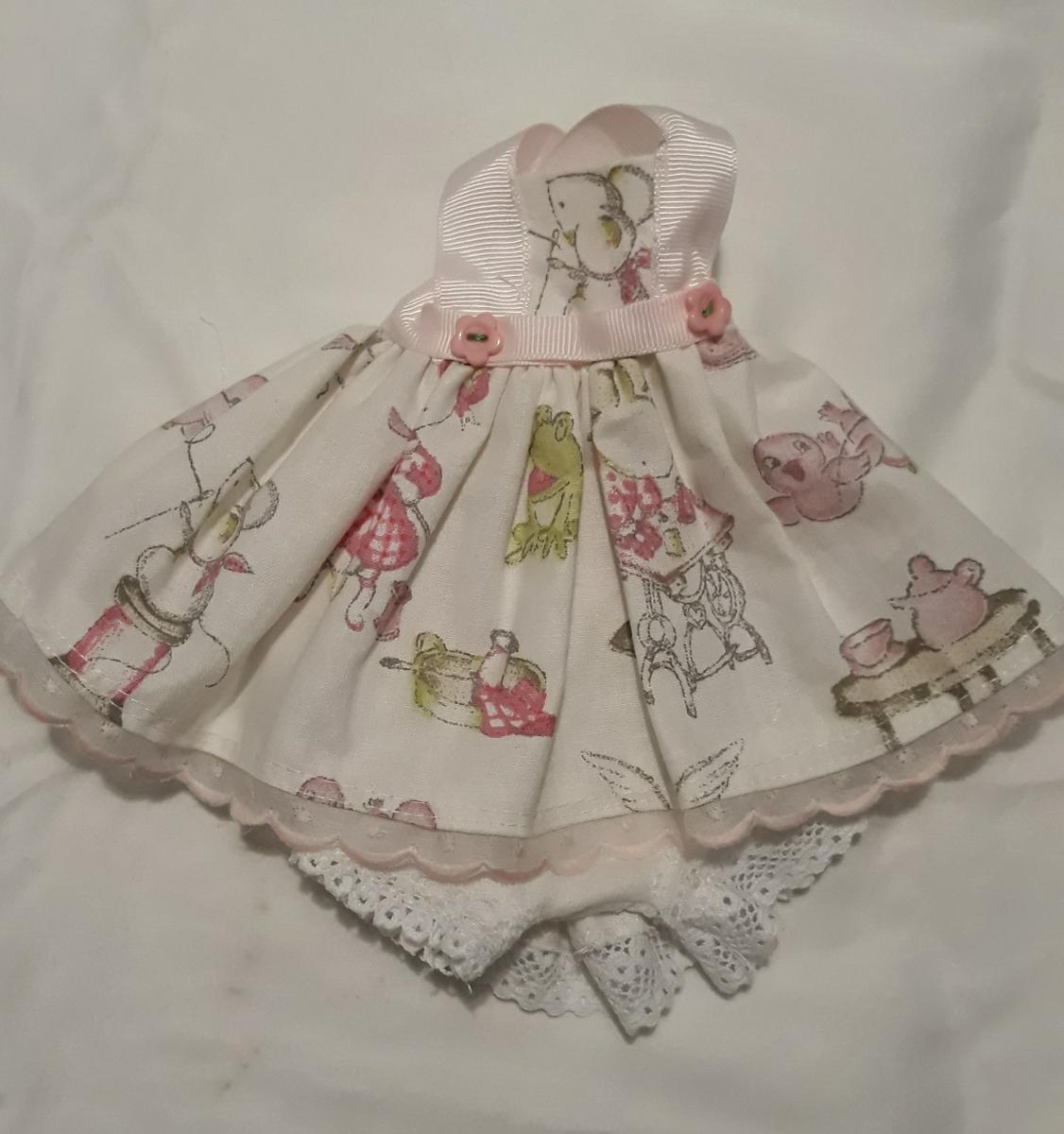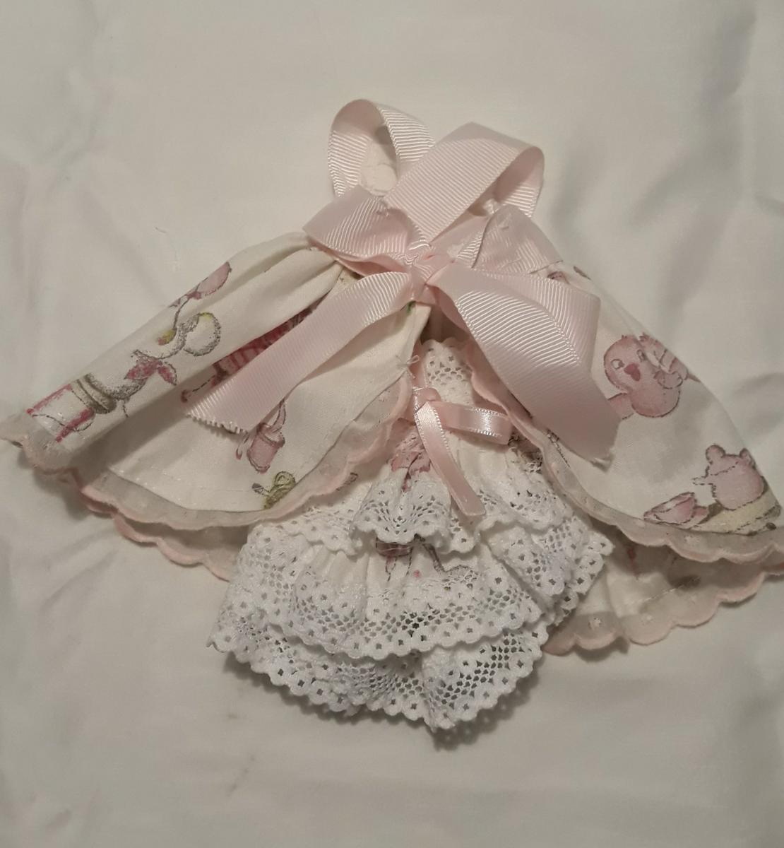 Parte de atras de la falda con peto y las braguitas con puntillas Todos estos vestidos son para la muñeca de Manuela, y está supergraciosa con ellos