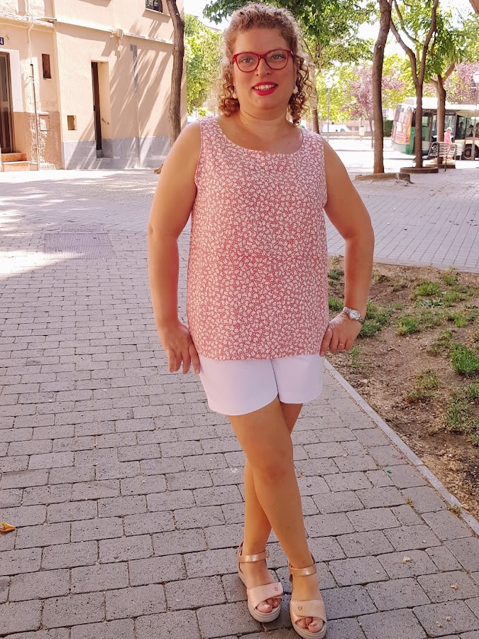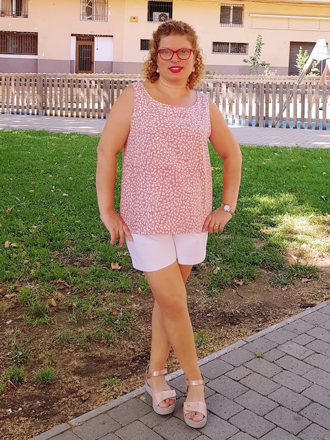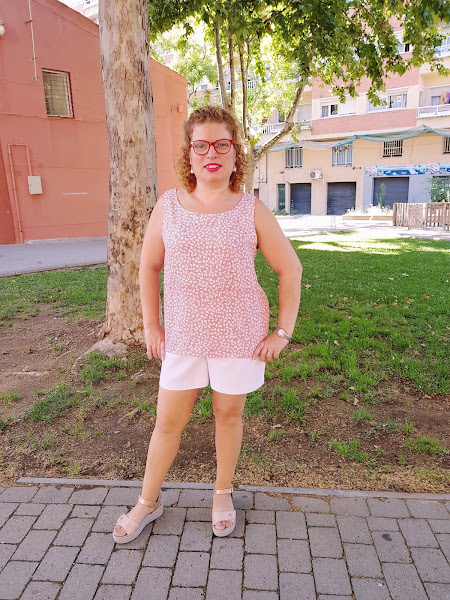 El top lo he combonado con los shorts de tejido de pique de color blanco que cosi la semana pasada , son muy comodos de llevar ya que tiene goma en la cintura y el corte es un poco anchito.