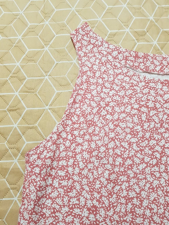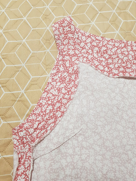 Estoy enganchada hac estas vistas con sisas y escote todo junto , queda muy bien cosido y se ve muy bien pulido la terminacion del top , ademas podeis apreciar bien el estampado tan bonito de la tela .