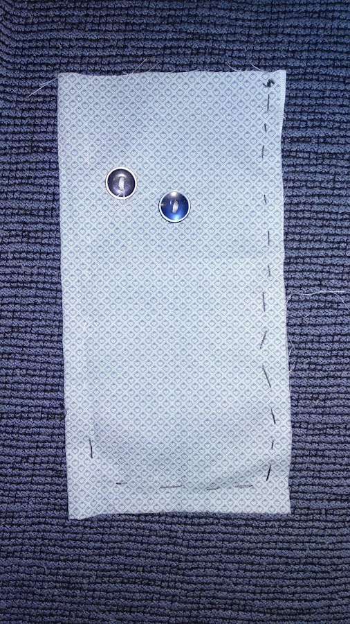 Cuando me vio coser, me pidió que le enseñara, quería aprender a toda costa, así que le di un trocito de tela, hilo, aguja y unos botones, unas indicaciones y después de un rato estupendo (no sin algún pinchazo, jajajajaja) salió este maravilloso trabajo que tiene un mérito grandísimo, verdad?