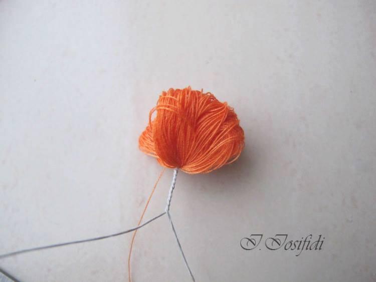 Cosemos los conjuntos de 3 pétalos para el centro de la rosa inglesa- 7 en total.